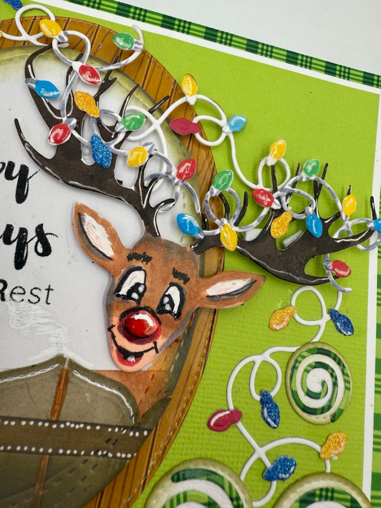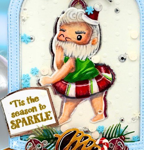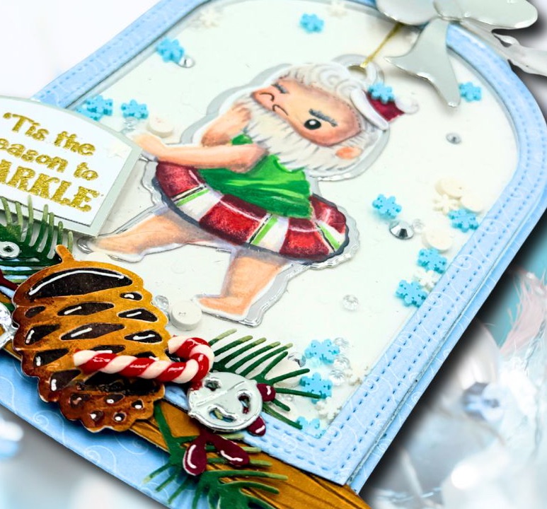 - Add sentiment, Stickles, crystal effects glaze and white gel pen snow; this allows you to tuck a sparkly accent or two.
