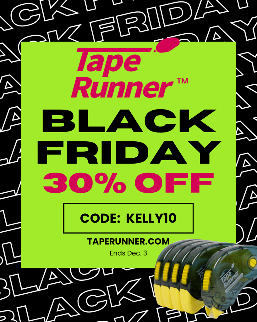 - Adhere all pieces except the stamped and colored matted panel using the Tape Runner Mini from http://www.TapeRunner.com. For 10% off use code: KELLY10