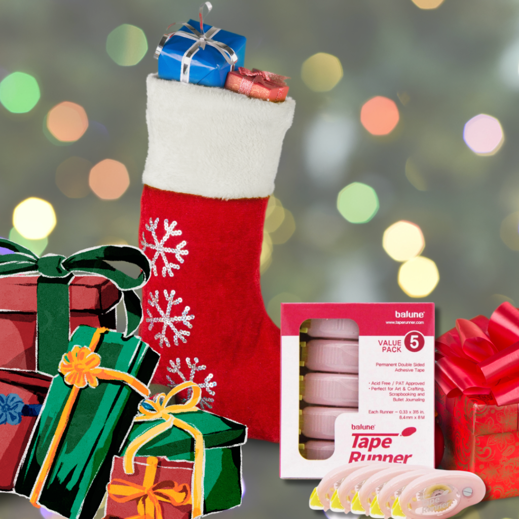 - Stamp pine branch on top and select 3 small ornaments and stamp haphazardly under the branch, connecting each ornament to the tree using a straight edge and a black fine liner pen.