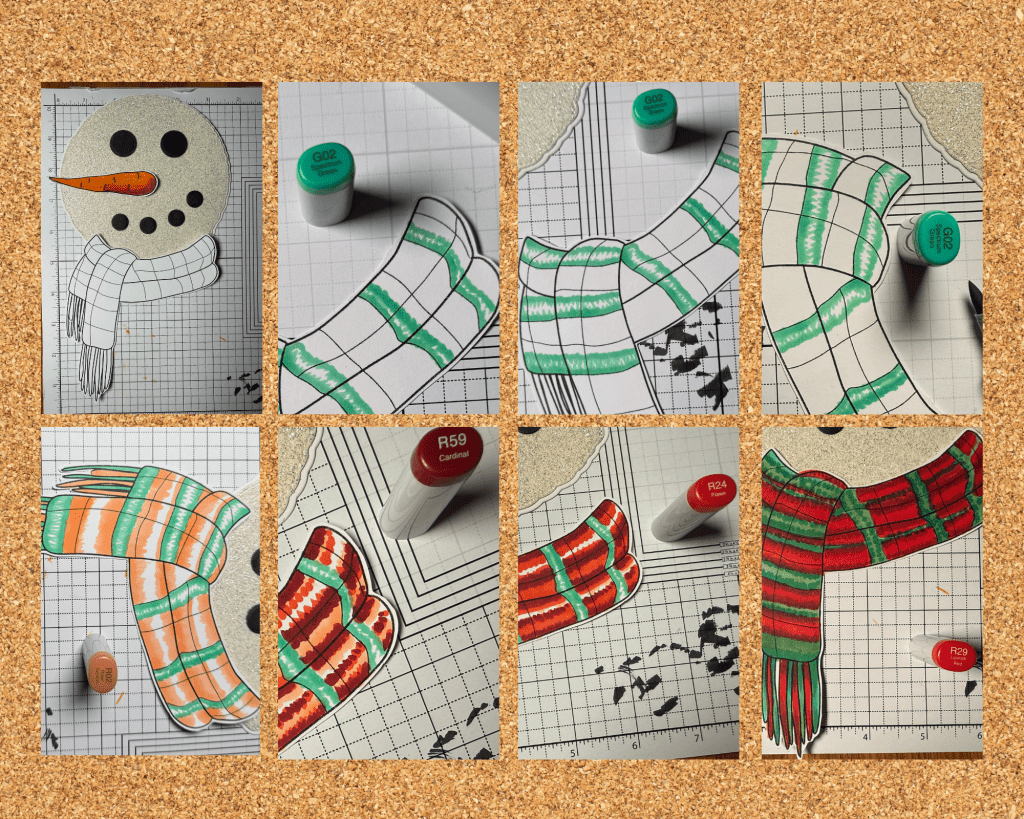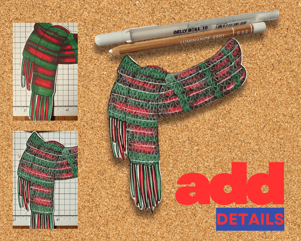 - Finishing touches: foam tape to pop up focal images, a dusting of white gel pen โsnow,โ and crystal 3-d glaze and Stickles for some glitz.