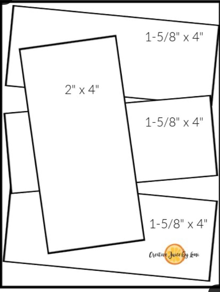 I leaned into cozy, rustic holiday vibes and made a wonky, toy-themed holiday card using Pajama Crafter Stamps’ products. I started with a kraft colored card base, layered a white card layer using a smaller stitched panel and 3 separate stitched strips of paper 1 5/8 inch tall with my stitched die and placed them in a wonky format to give the design playful movement. The sketch came from a Pinterest post I loved by Creative Juice by Loni, but I modified it with my stitched dies to add texture and interest, plus I wanted my patterned papers to be more centered and cut them down a bit to approximately 1 5/8 inch x 3 3/4 inch wide.
