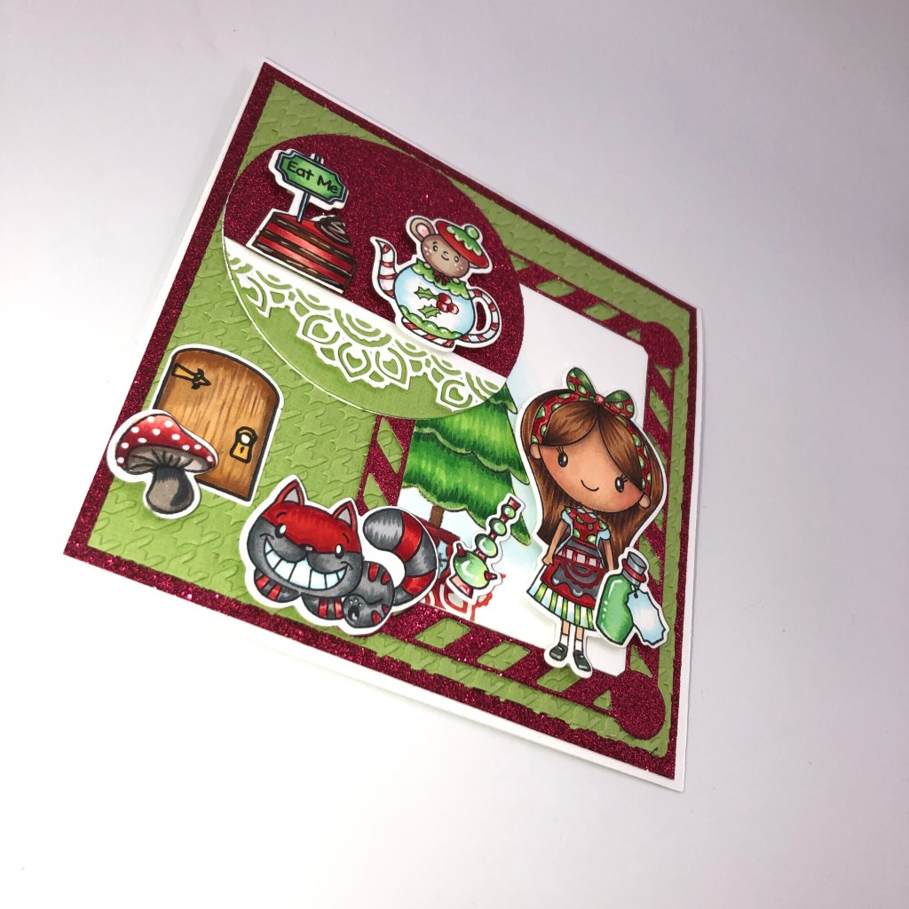Another way to think outside the box is to combine multiple stamp sets to create a completely unique card. For example, you could combine elements from a beach set like Summer With My Gnomies with a Christmas themed set and transport those Gnomes straight to the North Pole! You can also change things up by selecting a Christmas color palette and transforming from traditional to fantastical, as with this spin on “Alice in a Winter Wonderland.”