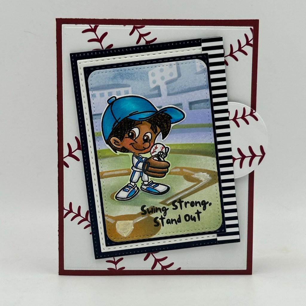 This month, I’m thrilled to introduce & showcase the Champion in the Making stamp set, complemented beautifully by a coordinating stencil called, Legends Born. These, paired with the 6×6 paper pack, are ideal for creating personalized cards that any baseball fan will cherish!