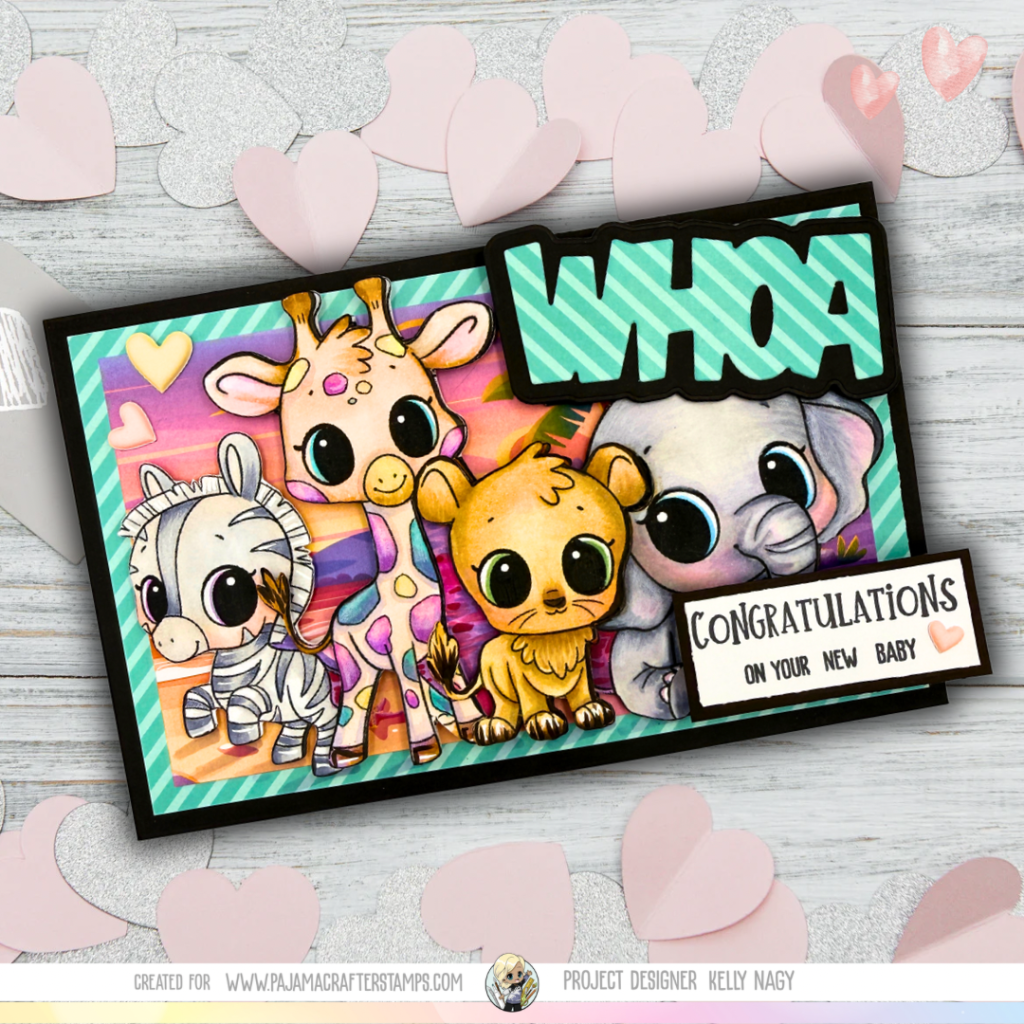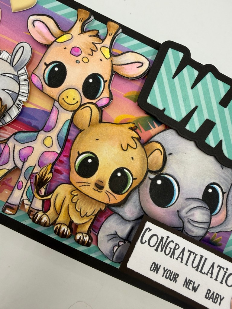 I’m super excited to share my latest card-making adventure with you all! I recently got my hands on the adorable Savannah Babies from Pajama Crafter Stamps, and I couldn’t wait to get started. 🦒✨