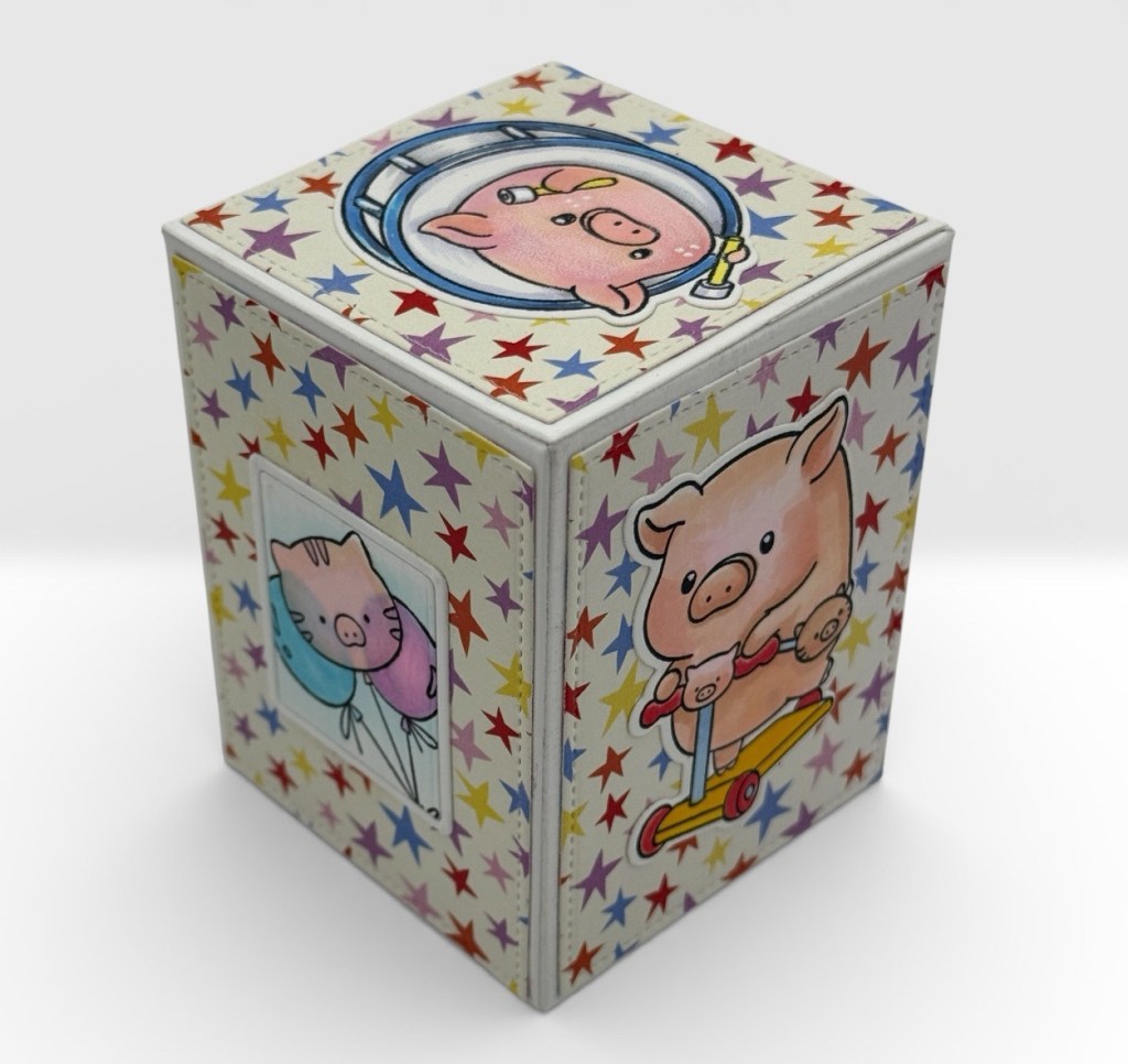I couldn’t resist showcasing the adorable Ham It Up stamp and die set featuring cute pigs! I combined it with a 3-D blind box with rip strip, making it perfect for packaging gift cards, treats, and other delightful surprises! 🎁✨