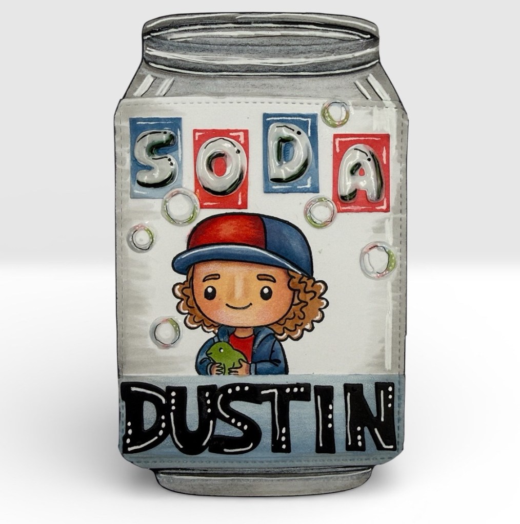 I started with a mini album card die shaped like a soda pop can! I paired it with the latest stamps from “Beyond the Normal” and infused it with colors inspired by my favorite character from a beloved series! The Scrappy Boy Alphabet Die Set is perfect for customizing your creations. 🎨✨