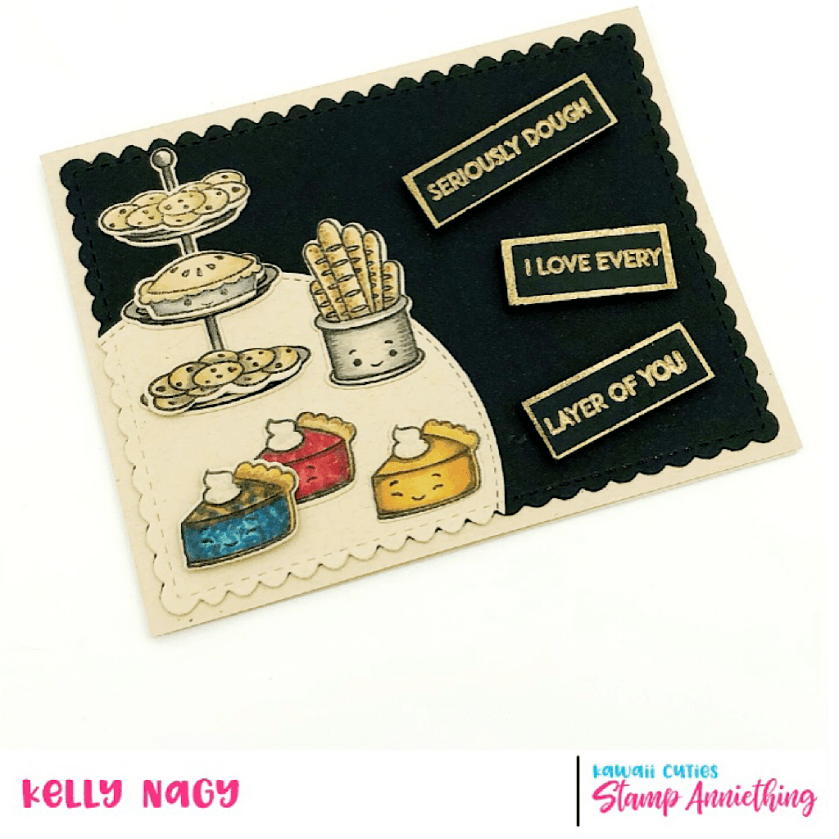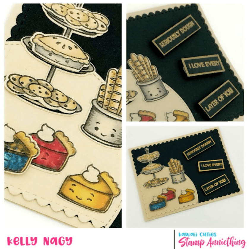 The first quarter release from Kawai Cuties by StampAnniething has some amazing sets. They are very versatile and you can mix and match on all different projects. This particular card uses the stamp set and coordinating dies from: Life is What You Bake It and I Will Never Dessert You.