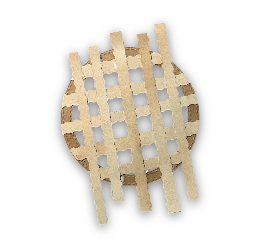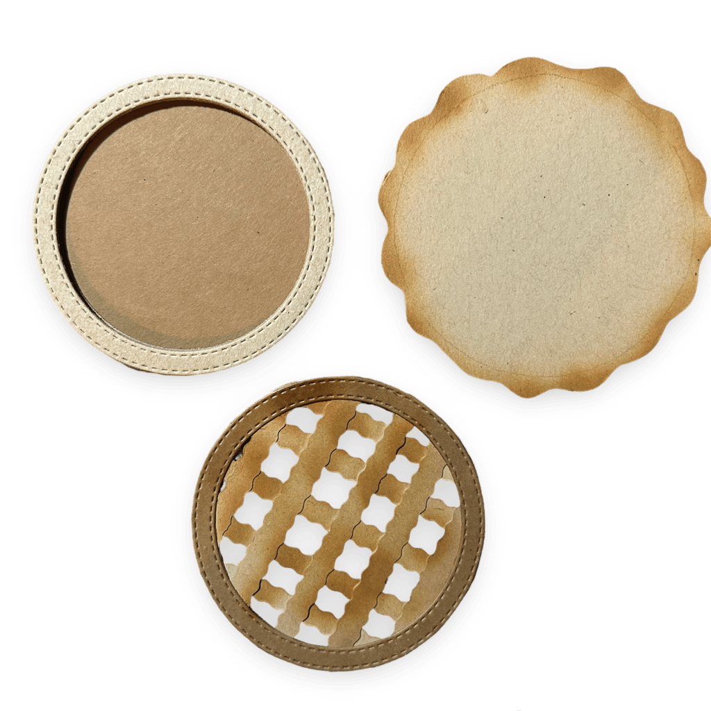 Edger dies/see smaller scalloped aboveInk blend your strips and glue down in s lattice design snd then cut off any edges that hang over.Layer strips and glue down to single frame to create pie top.